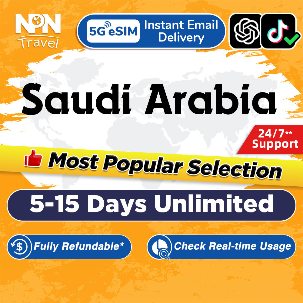 Saudi Arabia eSIM Ultra 5-15Days Daily500MB/2GB Unlimited Data | Instant 24h Email Delivery | High Speed Travel Data SIM