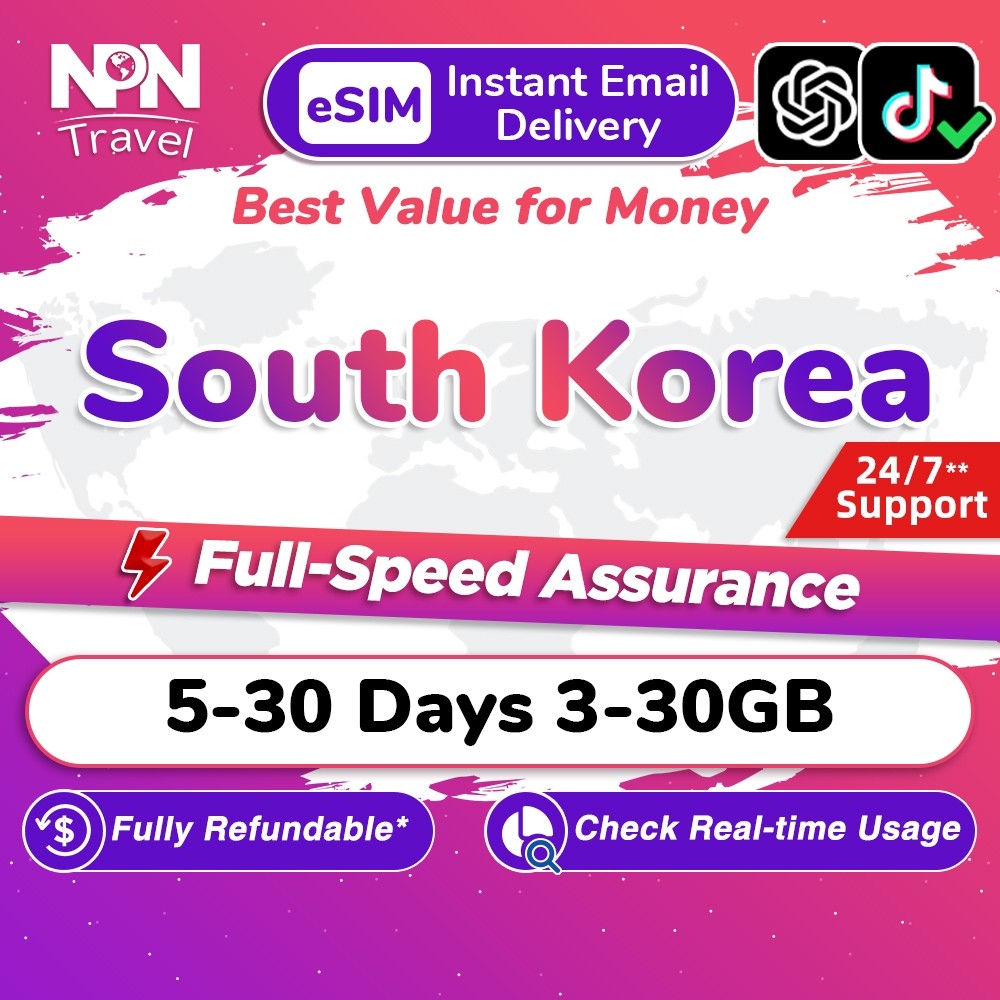 South Korea eSIM Pro 1-30Days 5-30GB 5G/4G Data | Instant 24h Email Delivery | High Speed Travel Data Korea SIM Card